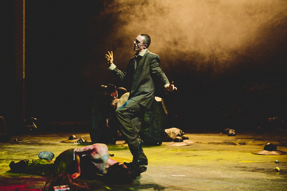 Immersed in a monumental set design, with moving objects and an original sound composition by Raphaëlle Latini — co-author of the piece — the audience hears the sounds of a collapsing world, orchestral fragments and animated objects by Lolo y Sosaku, forming a metaphor for humanity’s resistance against time.