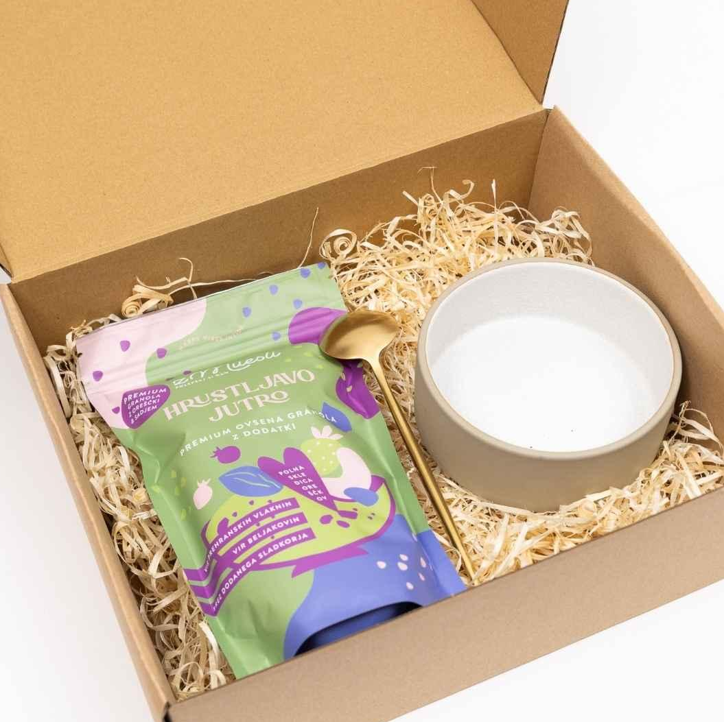 Granola je hrustljava mešanica praženih ovsenih kosmičev, oreščkov, semen, suhega sadja in aromatičnih dodatkov, kot so med, cimet ali naravni sirupi. Njena skrivnost je v preprosti sestavi in odličnem okusu – brez nepotrebnih dodatkov, barvil ali umetnih sladkorjev.